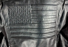 Jaqueta de motociclista masculina de couro bandeir